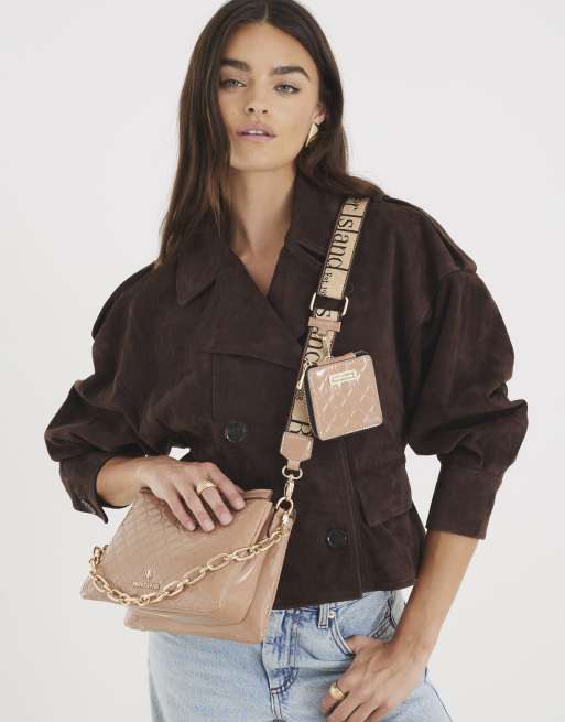River Island Patent chain cross body bag in beige
