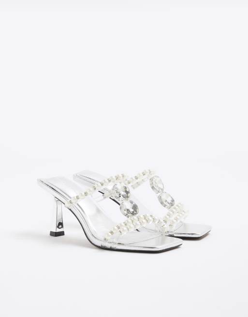 River Island Pearl diamante heeled sandals in silver