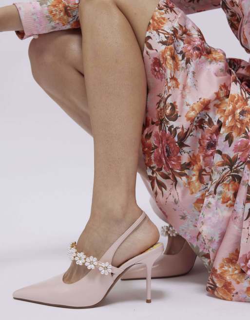 River Island Pearl flower slingback court heels in pink - light