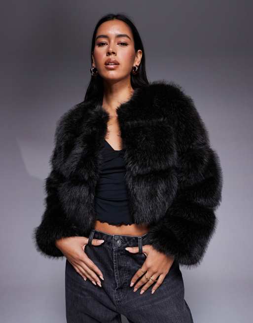 River Island petite faux fur panelled jacket in dark brown