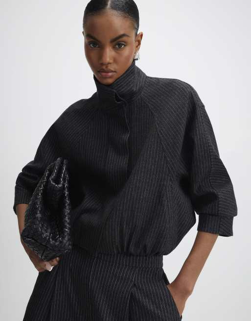 River Island Pinstripe funnel neck bomber jacket in grey - dark