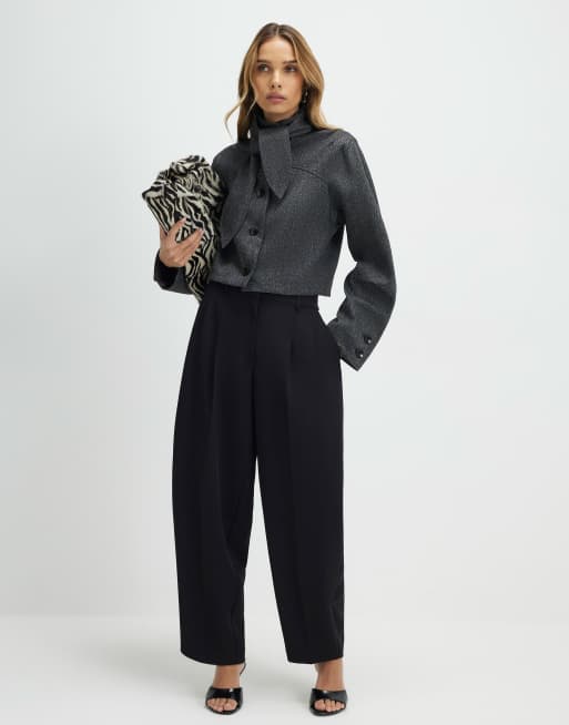 River Island Pleated barrel leg trousers in black