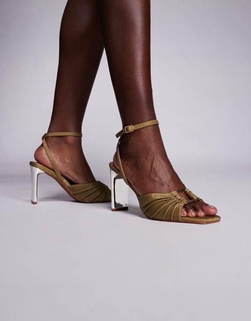 River Island pleated ring block heeled sandals in green