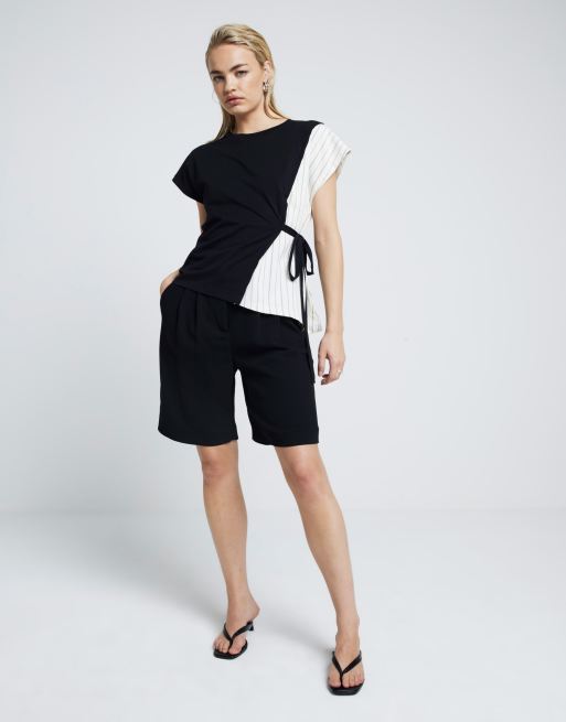 River Island Plisse hybrid belted top in black