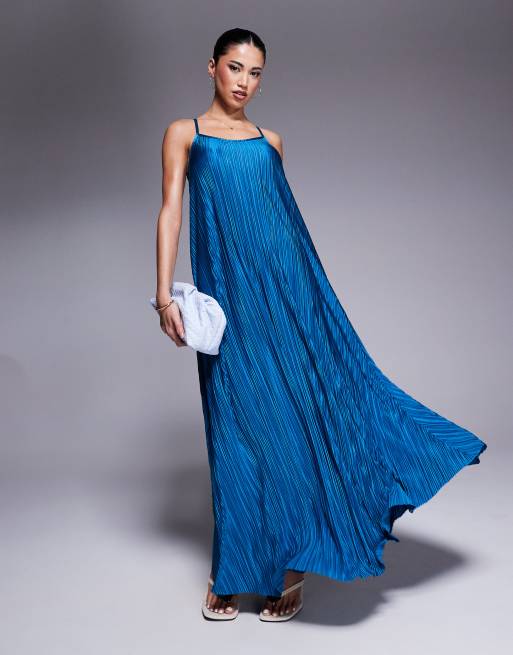 River Island plisse maxi dress with metal trim in blue