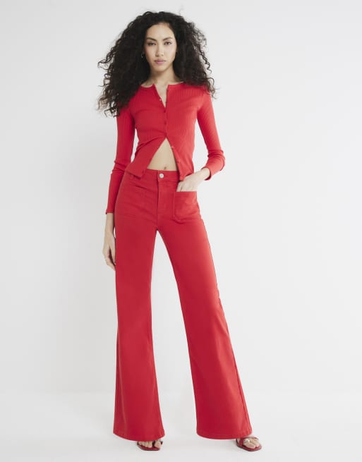 River Island Pocket front wide leg jeans in red