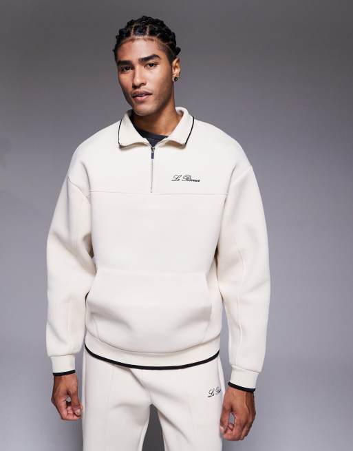 River Island premium 1/4 zip sweatshirt co-ord in ecru in scuba-style fabric