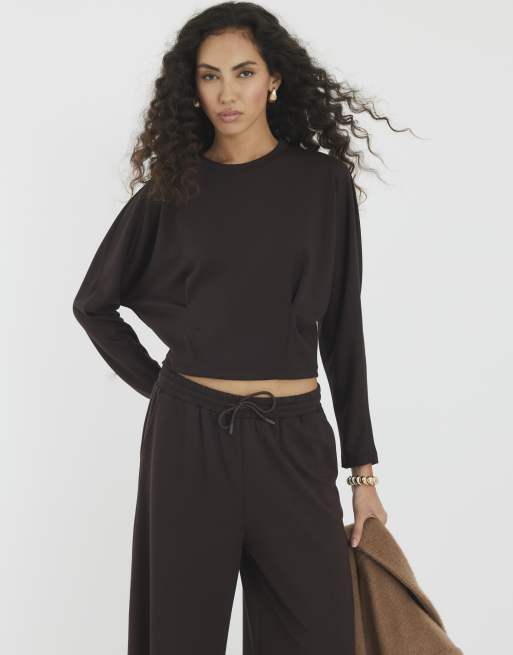 River Island Premium batwing sleeve sweatshirt in brown - dark