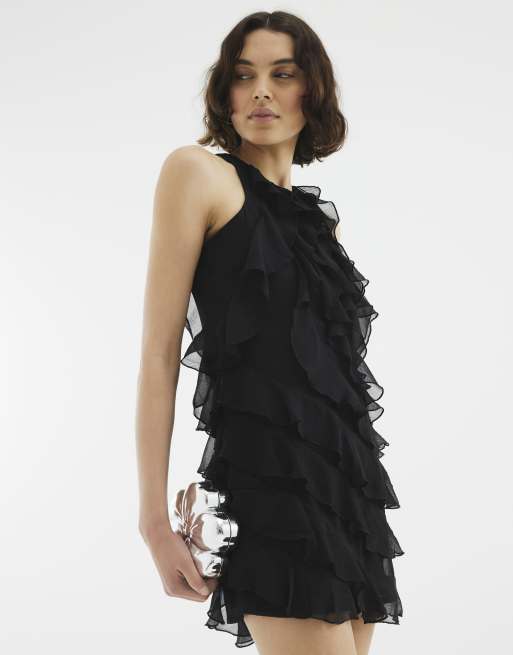 River Island Premium ruffle mini dress in black