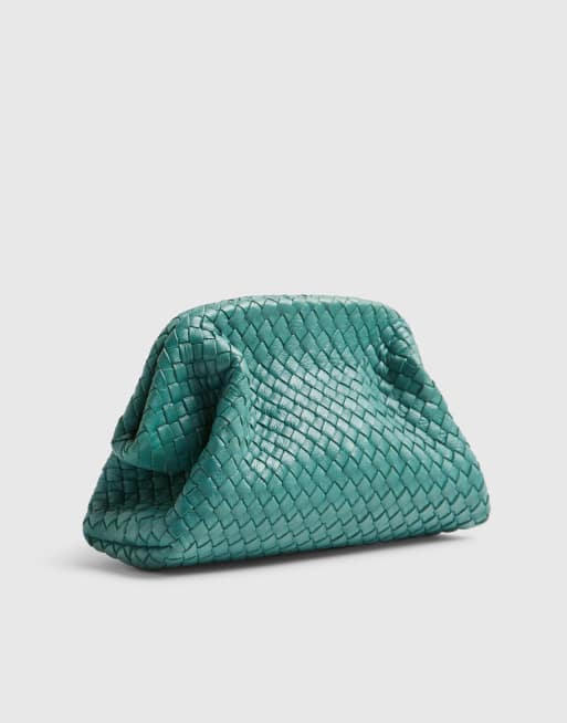 River Island Premium small leather woven clutch bag in aqua