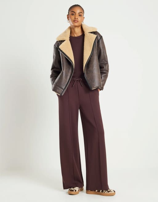 River Island Premium wide leg pintuck joggers in brown - dark