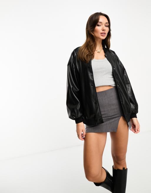 River Island PU oversized bomber in black