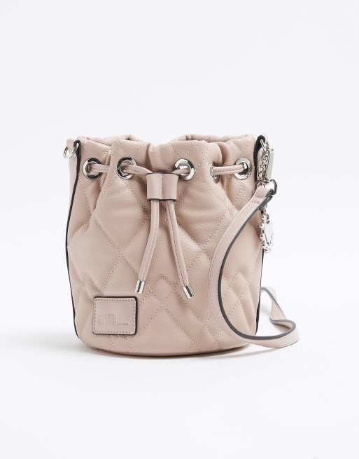 River Island Quilted bucket bag in pink - light