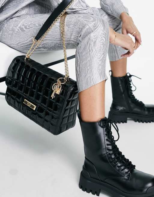 River Island quilted chain shoulder bag in black
