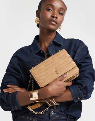 River Island Quilted chain shoulder bag in brown - light