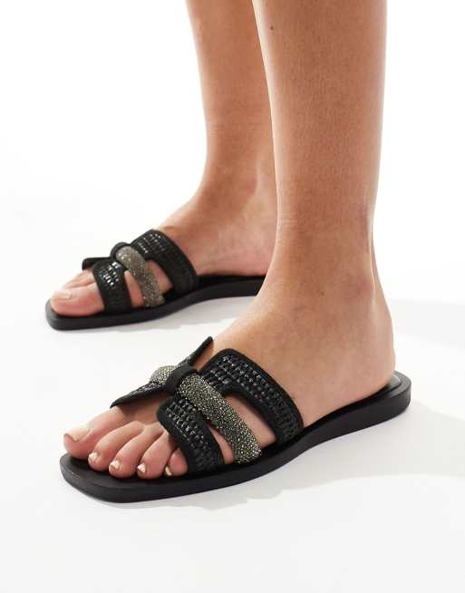 River Island raffia sandal in black