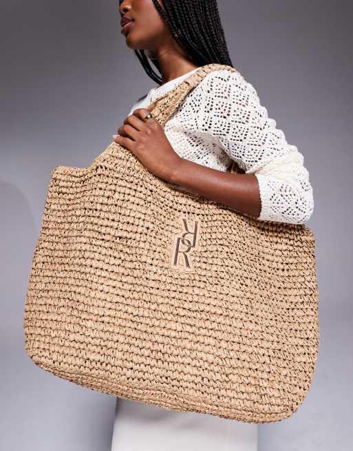River Island raffia shopper bag in beige