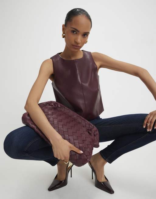 River Island Red faux leather shell top in burgundy