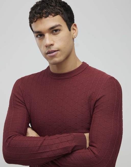 River Island Red muscle fit textured jumper in rust