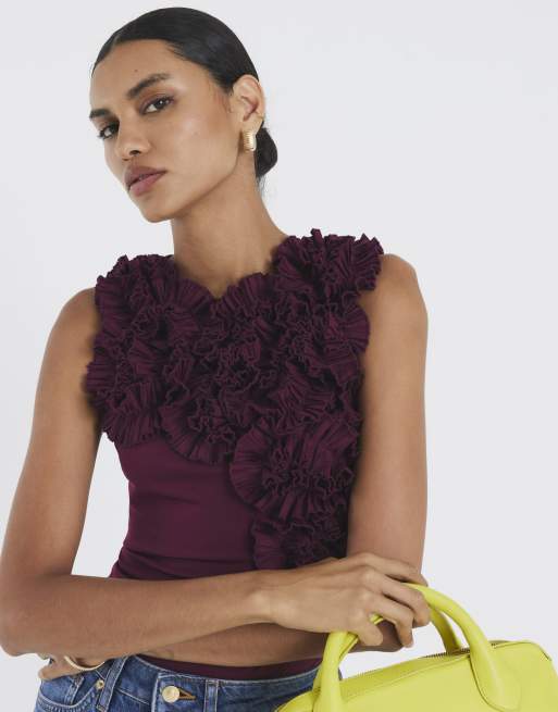 River Island Red sleeveless ruffle bodysuit in purple - dark