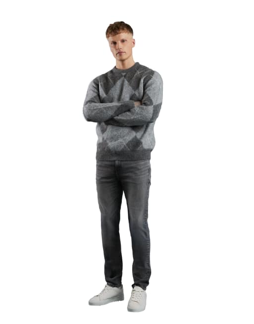 River Island Regular fit brushed argyle jumper in grey - light