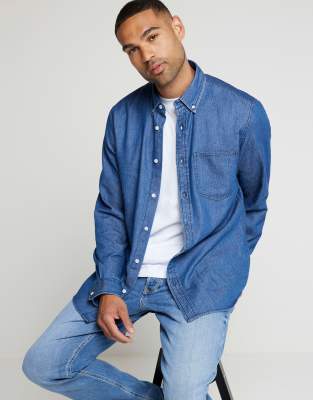 River Island Regular fit lightweight denim shirt in blue