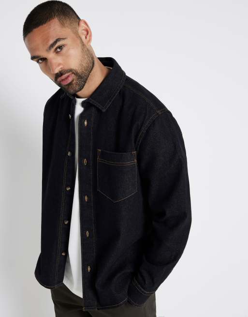 River Island Regular fit long sleeve denim shirt in black