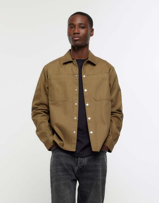 River Island Regular fit popper front overshirt in green - light