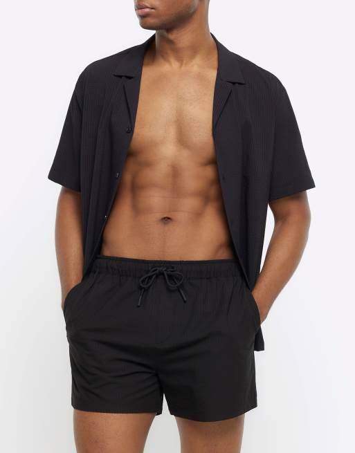 River Island Regular fit seersucker swim shorts in black