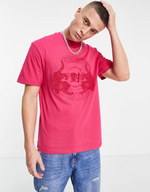 River Island regular japanese print t-shirt in bright pink