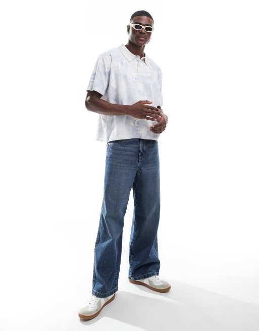 River Island relaxed fit knitted polo in blue swirl