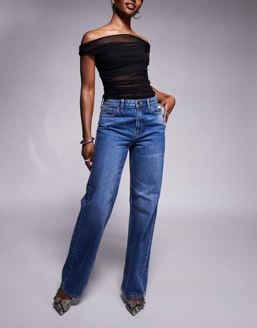 River Island relaxed straight jean in midwash blue
