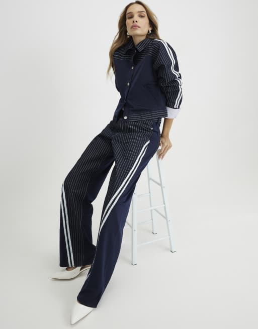 River Island Relaxed straight leg stripe hybrid jeans in denim - dark