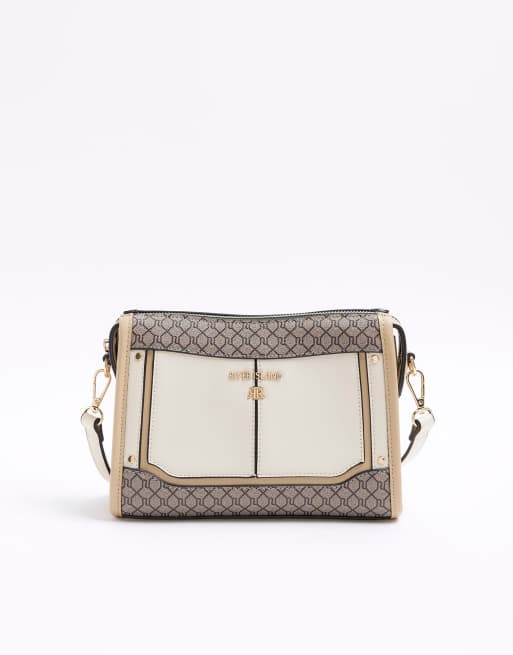 River Island Ri monogram panel cross body bag in cream