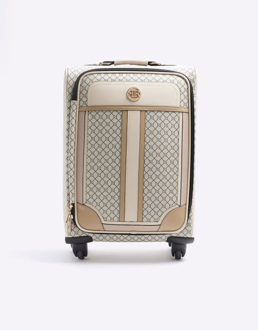 River Island Ri monogram suitcase in beige