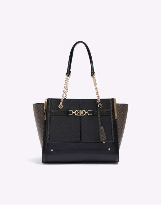 River Island Ri monogram tote bag in black