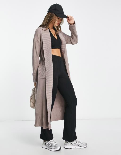 River Island ribbed maxi cardigan in brown