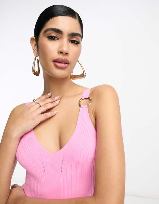 River Island ring detail ribbed knit vest in bright pink