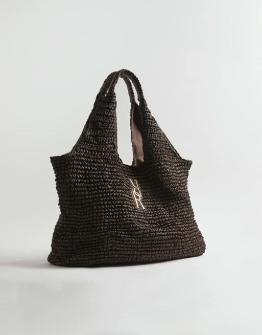 River Island Rr raffia shopper bag in brown - dark