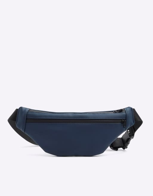 River Island Rubberised zip bum bag in navy