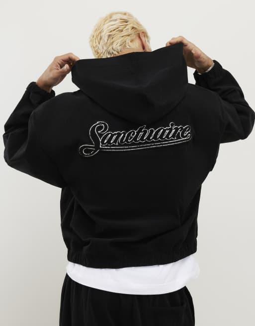 River Island Sanctuaire corduroy zip through hoodie in black