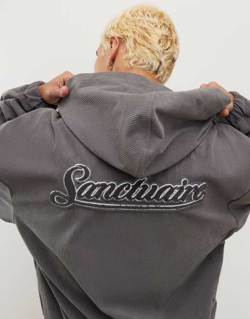 River Island Sanctuaire corduroy zip through hoodie in grey - dark