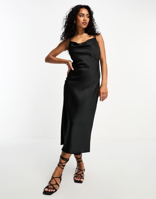 River Island satin cowl neck midi dress in black