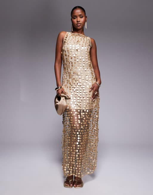 River Island sequin crochet maxi dress in gold