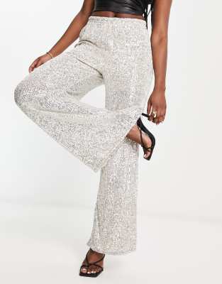 River Island sequin flare trousers in champagne