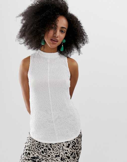 River Island sequin high neck blouse in white