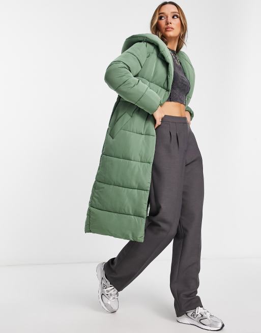 River Island shawl collar padded coat in khaki