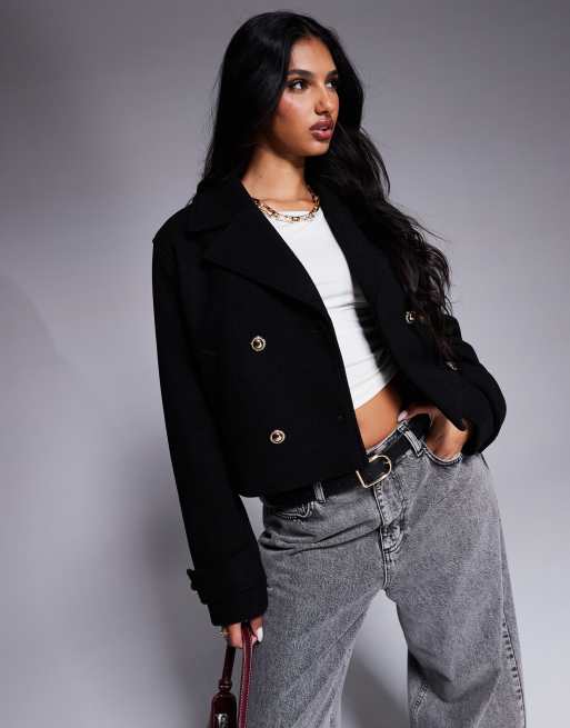 River Island short double breasted wool look jacket in black