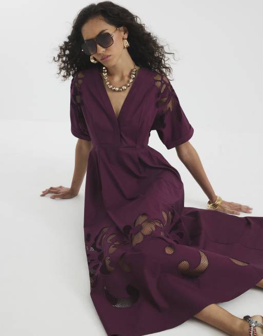 River Island Short sleeve cutwork midi dress in red - dark