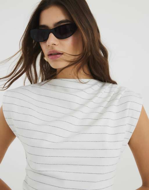 River Island Short sleeve draped high neck top in cream